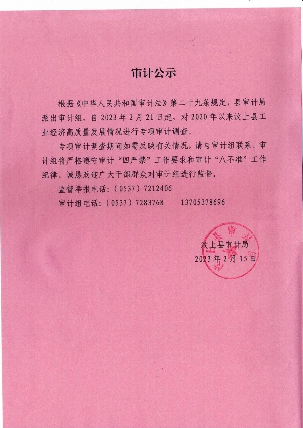 会上,张风红宣读了审计通知书,张利介绍了审计工作的重要意义、审计范围、审计内容和时间安排等,并提出相关工作要求。张利表示,加强领导干部经济责任审计,对于推动深化预算改革、领导干部履职尽责具有重要意义,工业经济高质量发展专项审计调查是贯彻落实省市县加力提速高质量发展的重要举措。张利要求,要充分理解审计工作,正确对待,积极配合,及时完整真实地提供审计所需材料,确定专人负责联络,切实加强沟通交流,共同确保审计任务顺利完成。