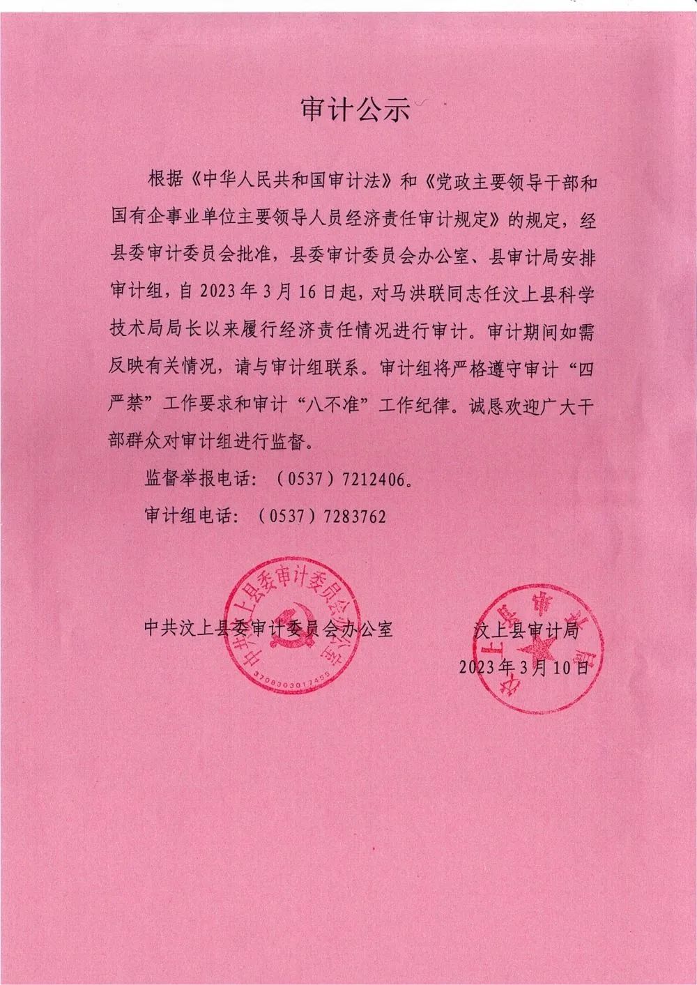 马洪联汇报了县科技局工作情况和履行经济责任情况,并作了表态发言。马洪联表示,要从讲政治的高度,严格遵守审计工作纪律,优质高效地做好协调联络、材料提供和服务保障工作;要正确认识审计过程中发现的各类问题和薄弱环节,针对各项问题,强化整改措施,认真及时抓好问题整改;要以本次审计工作为契机,进一步完善优化单位财务管理制度,健全领导干部的监督管理,促进单位廉政建设,提升全局管理水平和工作效能。