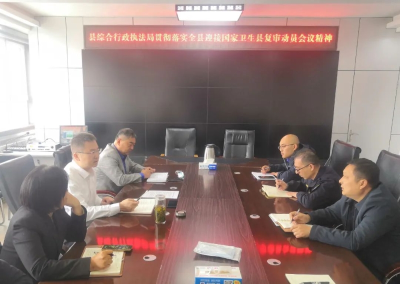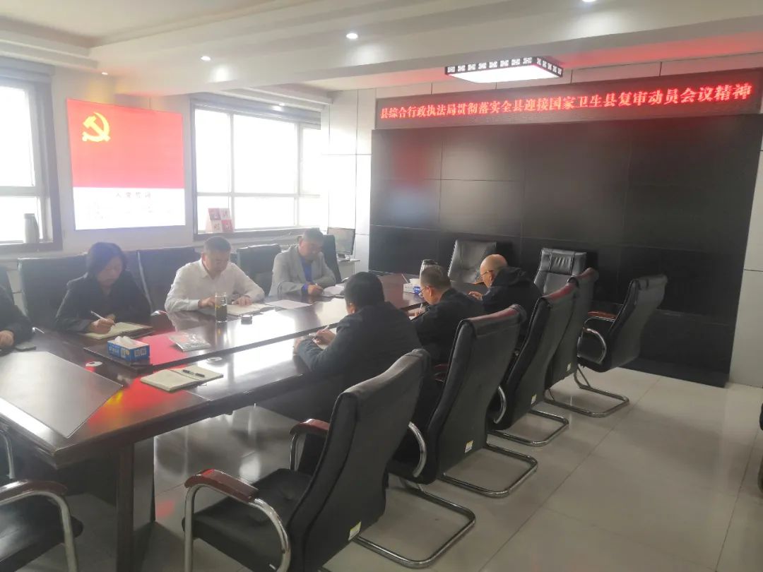 3月20日,县综合行政执法局召开专题会议,贯彻落实全县迎接国家卫生县城复审动员会议精神,会议由局党组副书记、副局长赵洪磊主持,副科级以上领导干部参加。