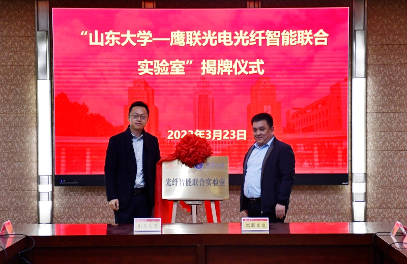 为全面加强大院大所招引力度,聚力提升县域经济创新水平,3月23日,汶上县政企考察团赴山东大学开展产学研对接活动,并举行“山东大学-鹰联光电光纤智能产用联合实验室”签约揭牌仪式。山东大学技术转移中心主任刘德宝,微电子学院党委书记吴天柱,县委常委、组织部部长张钦国,县政府副县长葛虎等领导出席本次活动。县委组织部、县大数据中心、县科技局、康驿镇、新风光、鹰联光电等单位负责人参加了活动。