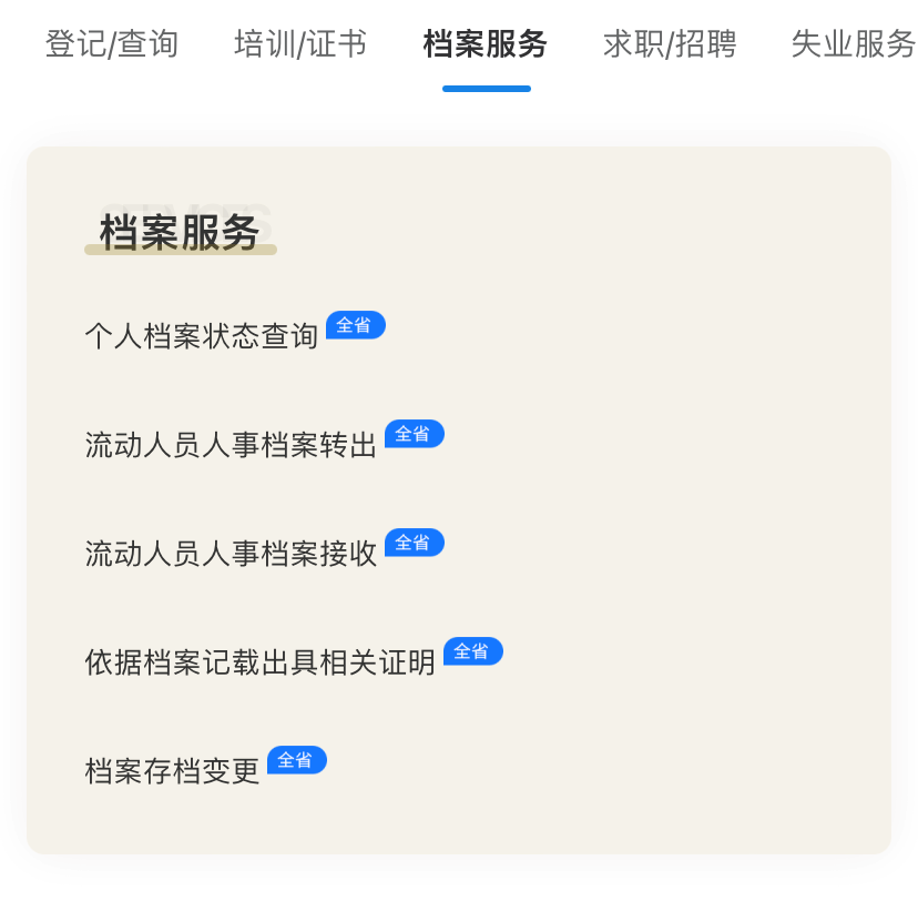 档案服务 档案无小事,想了解自己的档案动向,在“爱山东”就能轻松查询! 【档案服务】板块集成个人档案状态查询、流动人员人事档案接收和转出、依据档案记载出具相关证明、档案存档变更共五项服务,方便就业人群随时随地查询自己的档案状态,无需跑腿办理,动动手指就能进行档案转移等操作。