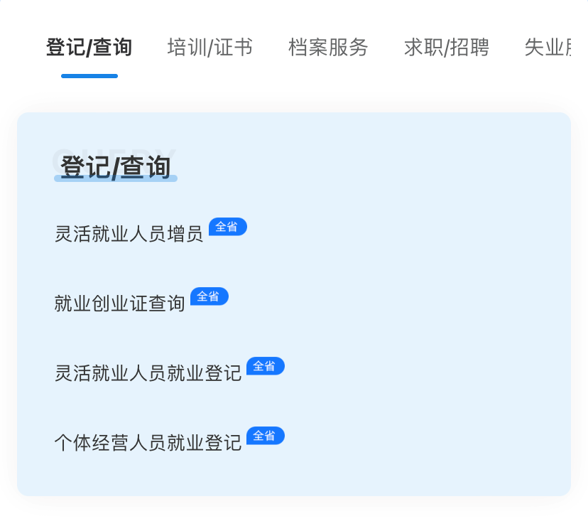 登记/查询 除了传统就业模式,灵活就业开始成为越来越多毕业生的选择。 【登记/查询】板块面向灵活就业和个体经营人员提供登记、查询等服务。悄悄告诉你,灵活就业人员进行就业登记,还可以申请享受创业培训补贴、社会保险补贴、公益性岗位安置等一系列扶持政策哦~