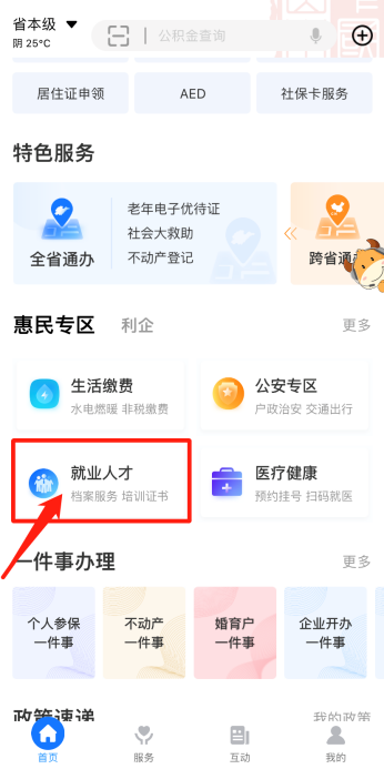 又是一年高校毕业季,告别校园,步入社会,职业生涯的开始总会伴随着各种问题: -还没有收到心仪的offer,官方权威的招聘平台和活动去哪儿找? -入职新公司需要转移档案,应该怎样查询办理? -选择灵活就业,如何进行就业登记? 别担心!这个专区一站解决你的问题!“爱山东”就业人才专区为你提供求职招聘、档案服务、失业服务、帮扶补贴、登记查询、培训证书共6类22项服务,满足就业人才多样化需求。 进入“爱山东”APP,首页下滑点击“惠民专区-就业人才”即可进入专区。
