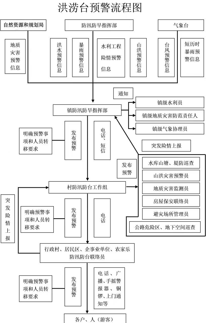 3、当接到灾害性天气预报、水雨情预警信息时,负责通知村级防汛防台负责人和各网格的联络员、监测员、巡查员、预警员等责任人进岗到位,做好人员转移等防御准备,将预警信息传递到户到人;