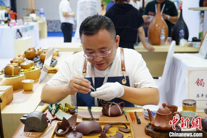 中新网济南9月15日电(王采怡)韵味典雅的琅琊古琴、栩栩如生的郭氏木雕、色彩鲜艳的莱芜面塑、笔触细腻的牡丹工笔画……第四届中国国际文化旅游博览会、第二届中华传统工艺大会(以下简称“博览会”)9月15日持续在山东济南举办,在“山东手造”展区,来自16地市不同风格的“山东手造”汇聚一堂、各展风采,尽显传统工艺魅力。 “山东手造”荟萃文旅盛会,尽显传统工艺魅力。图为画工正在现场创作牡丹工笔画。祁建月 摄 当天,记者在菏泽市巨野县的牡丹工笔画展位看到,一名画工正在宣纸上给牡丹花瓣上色。“牡丹工笔画是我们当地的特色,现在已经形成集绘画、刻章、装裱、培训等为一体的产业链。”菏泽市巨野县书画院院长程军伟表示,牡丹工笔画笔法精湛、色彩绚丽,学起来上手很快。目前,该产业已带动1万余人实现家门口就业。“希望通过这次博览会提升牡丹工笔画的知名度,宣传牡丹文化。” “山东手造”荟萃文旅盛会,尽显传统工艺魅力。图为手工艺者正在进行锔瓷。王采怡 摄 “这套茶具名为‘镶银葫芦茶具’,是融合锔瓷工艺制作的独特文创产品。”来自聊城市茌平区的锔瓷技艺代表性传承人张保洋说,所谓锔瓷,就是用金刚钻和锔钉修补破碎的瓷器,是一项兼具实用价值与艺术价值的传统手艺。“我们通过打造精巧的文创产品、开设锔瓷课程等,让更多人了解这门手艺,也想借这个展会进一步推广锔瓷技艺。” 选料、打胚、挖槽腹、髹漆、装配件、调音……在文博会现场,来自临沂市郯城县的斫琴传承人陈乃峰正在向观众讲解制作古琴的方法。“斫琴不仅是门技术,更是门艺术。斫琴师不仅要会木工,懂音律、铭文、漆艺等,还需要具有艺术审美能力。”陈乃峰认为,古琴文化要与时俱进,通过文博会这个平台,可以让斫琴走进大众生活,把老祖宗的技艺传承发展下去。 “山东手造”荟萃文旅盛会,尽显传统工艺魅力。图为木雕作品“荷之韵茶盘”。王采怡 摄 “郭氏木雕发源于明朝时期,距今有600多年的历史,传到我这里已经是第22代。”来自济宁市汶上县的郭氏木雕传承人郭宗磊告诉记者,他喜欢在创作时融入家乡的文化元素,比如新创作的“荷之韵茶盘”,上面雕刻的荷花是济宁市的市花,白莲藕是汶上县的特产。“我几乎每年都来参加博览会,既能和其他手工艺者交流学习,也增加了自己的订单量,收获很大。” 博览会现场,还有俄罗斯巧克力、印度精油、沙特阿拉伯工艺品等来自30多个国家的特色手工艺品、文创产品集中亮相,展示独具地域特色的“手造”风采,释放文化活力。