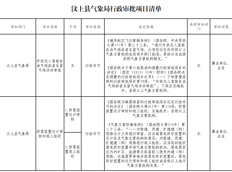 汶上县气象局行政审批项目清单
