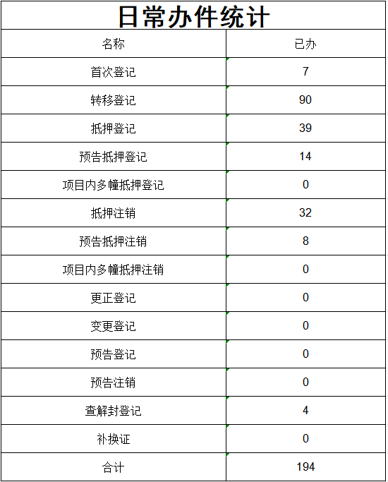 2023年9月25日汶上县不动产登记中心业务量统计表