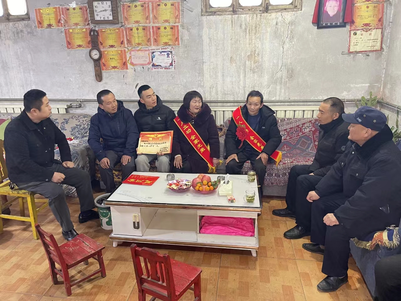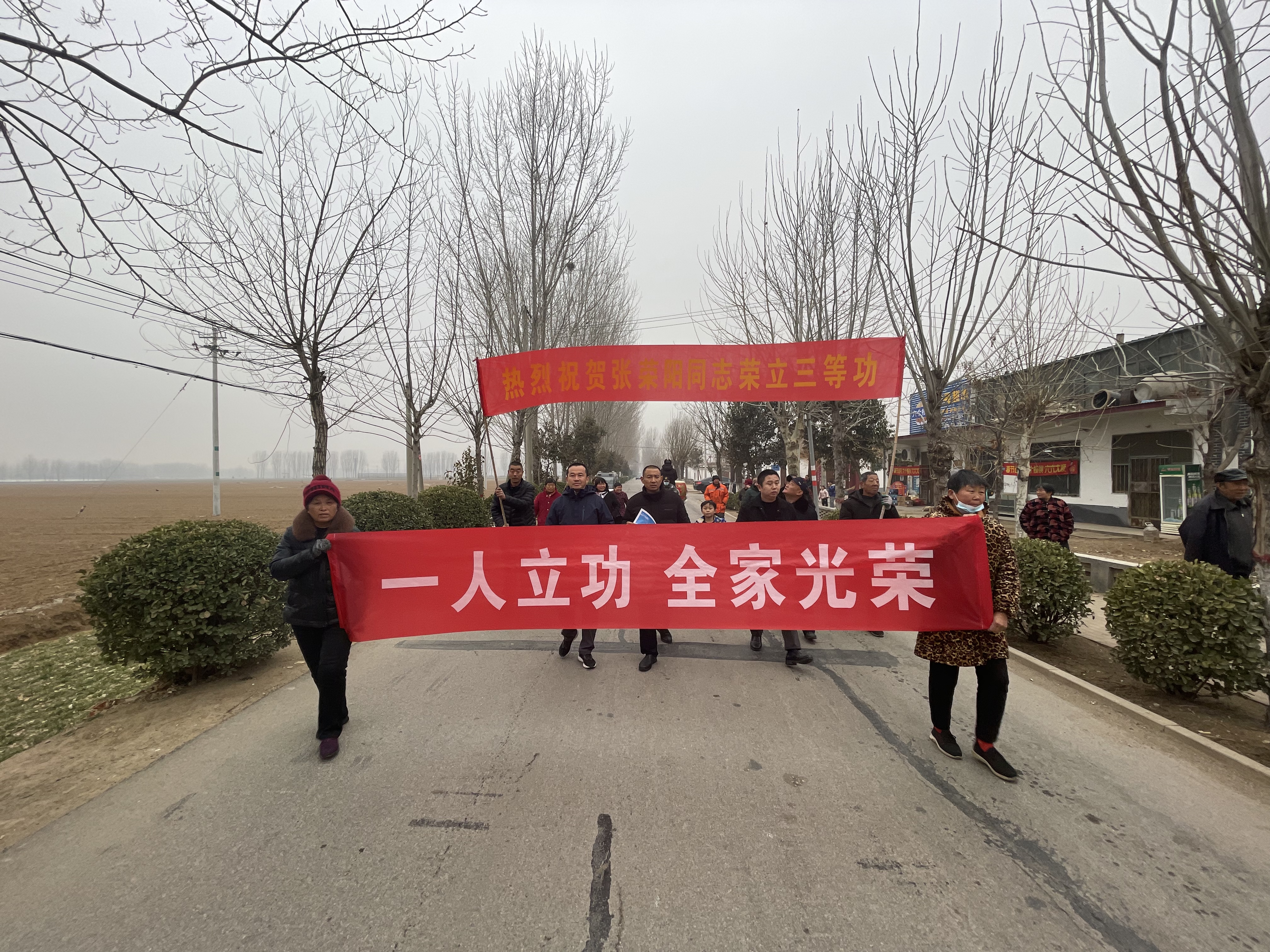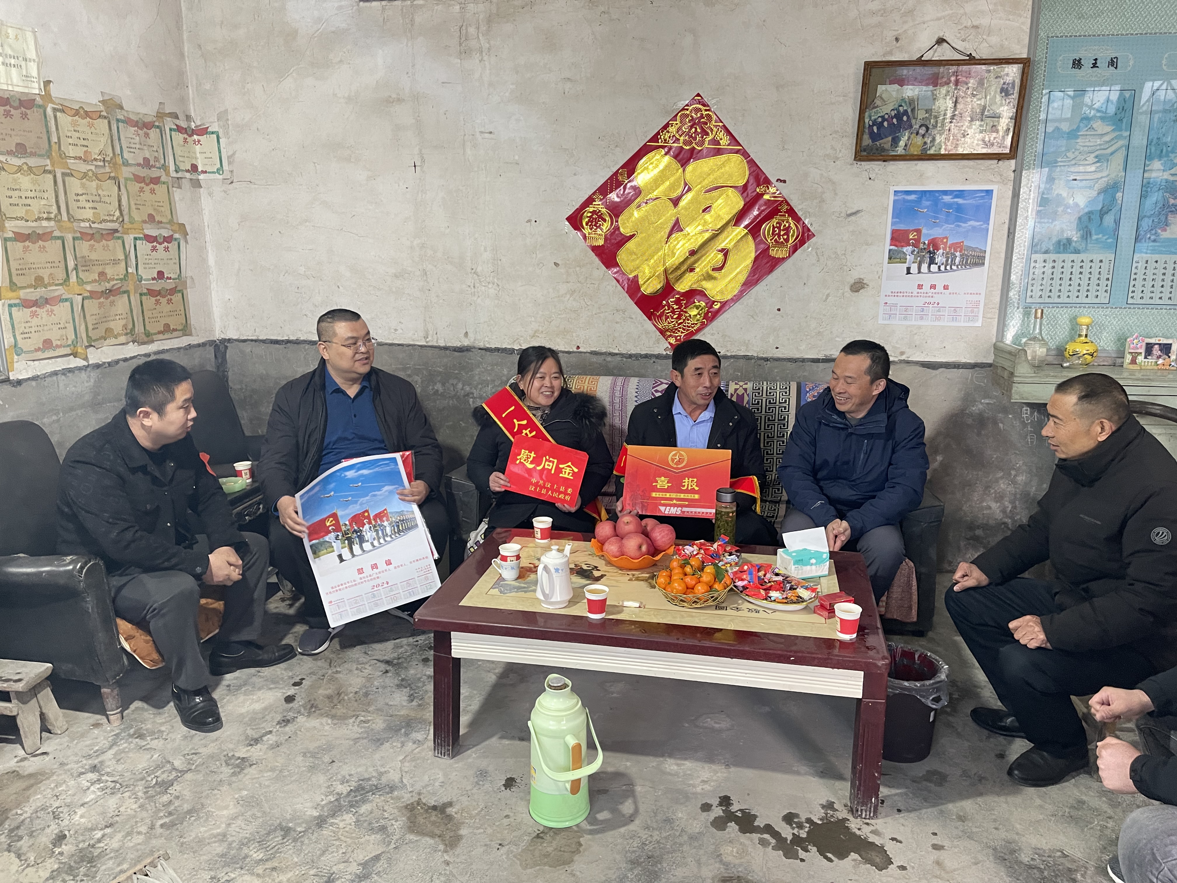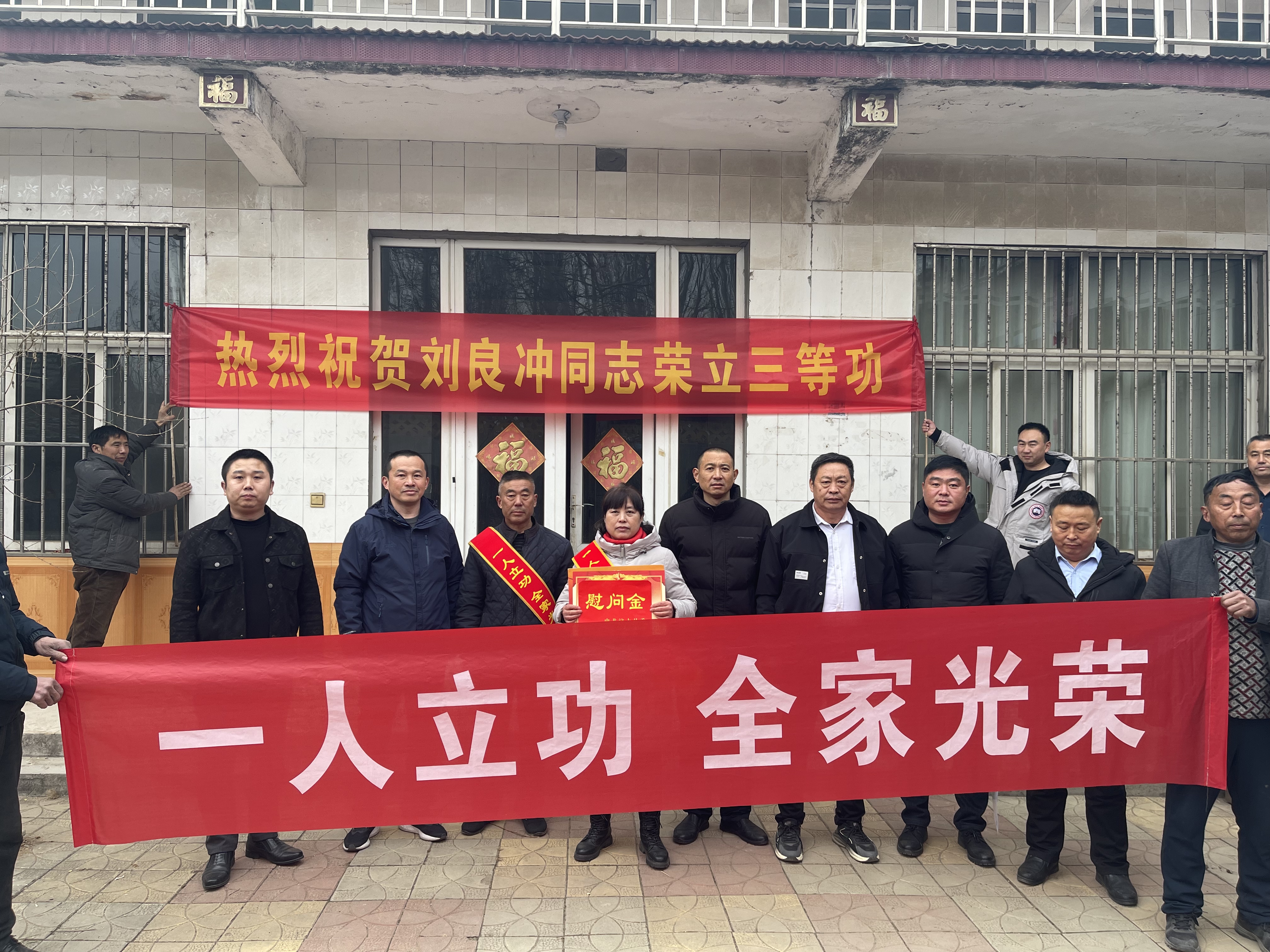 1月30日,县退役军人事务局、郭楼镇退役军人服务站、各网格书记以及村两委成员为荣立三等功的现役军人家属送上喜报,与军属共享喜悦和荣耀。