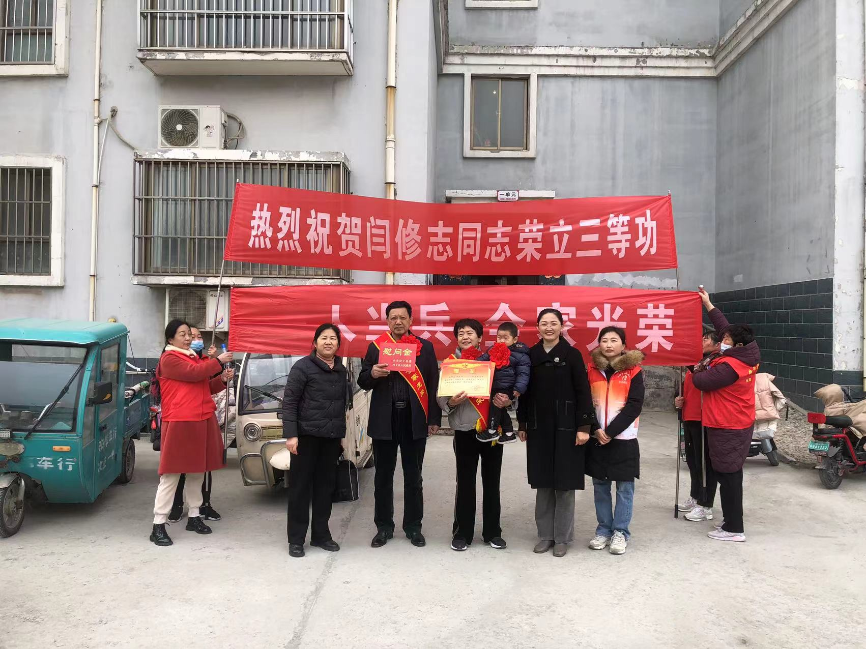 为进一步弘扬新时代拥军优属光荣传统,营造关爱军人的良好社会氛围,提升军人尊崇感,2月29日,汶上县中都街道党工委委员禚晓英主任及街道退役军人服务站站长何卫华、闫村社区工作人员,走访慰问荣获三等功现役军人闫修志家属,将党和政府的温暖送给立功现役军人家属,让家属和家乡人民分享这份喜悦和荣光。