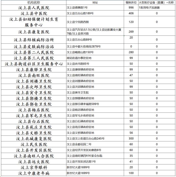 医疗机构情况