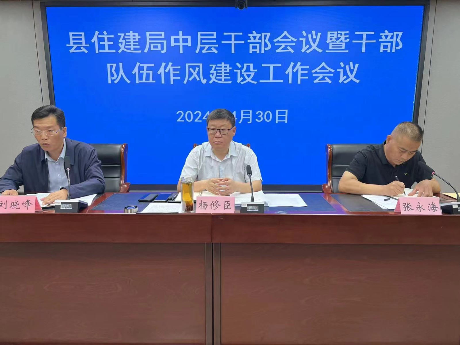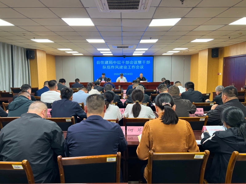 4月30日下午,县住建局召开中层干部会议暨干部队伍作风建设工作会议。县住建局局长杨修臣、机关党委书记张永海、县纪委监委派驻第六纪检监察组副组长刘晓峰出席会议,县住建局副科级以上领导干部、机关各科室负责同志参加会议。
