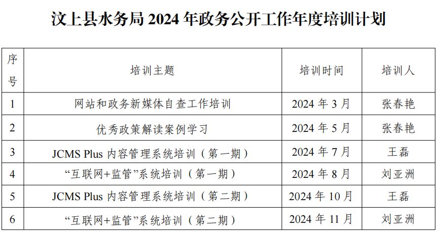 县水务局2024年政务公开培训计划