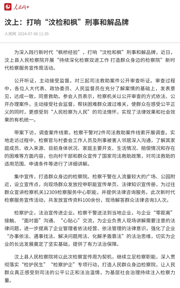 人民网丨汶上县检察院:打响“汶检和枫”刑事和解品牌 |
