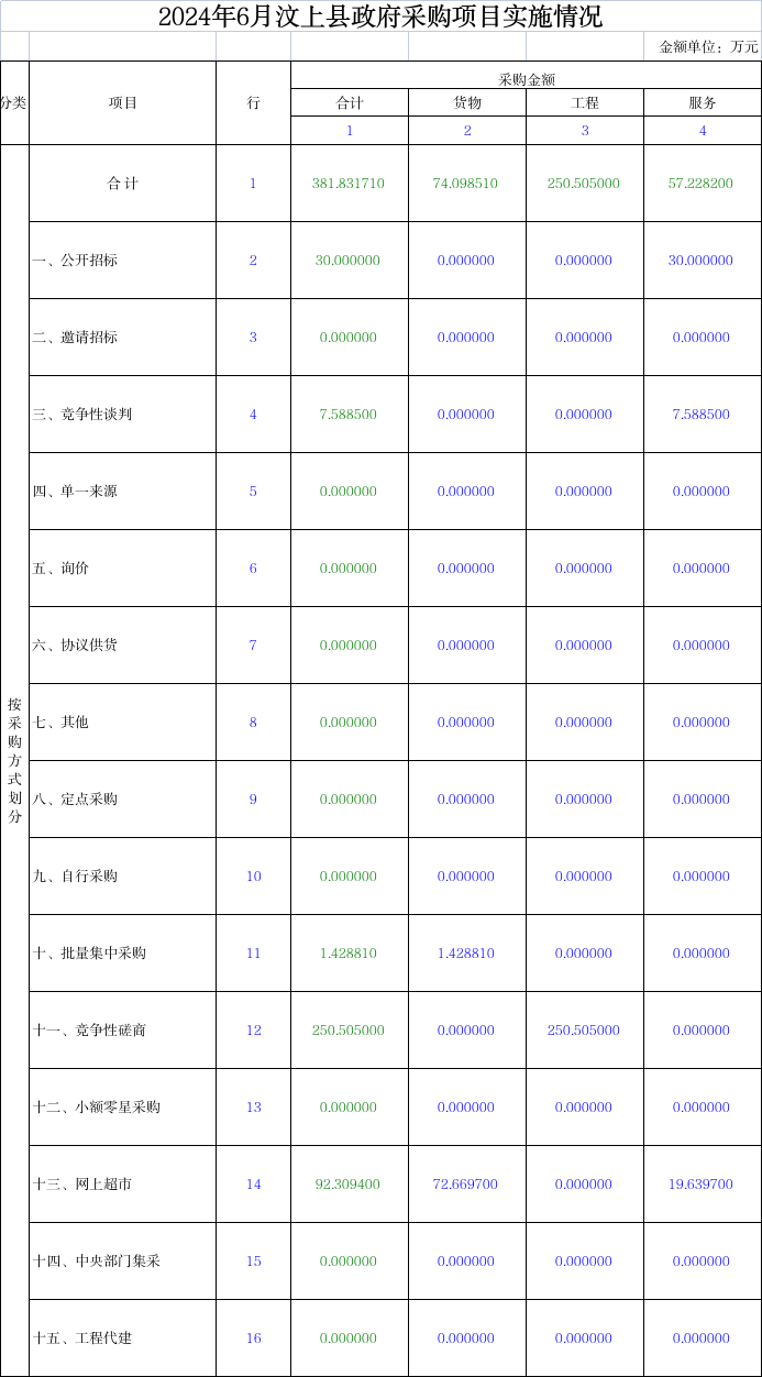2024年6月汶上县政府采购项目实施情况