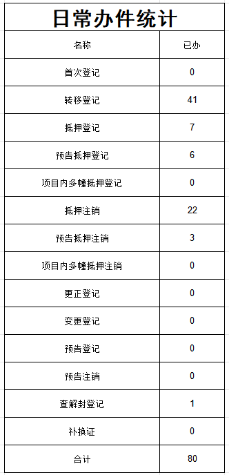 2024年8月7日汶上县不动产登记中心业务量统计表
