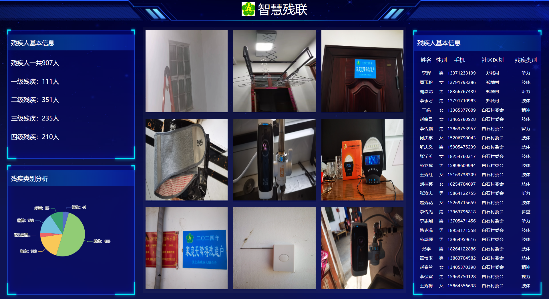 三、延伸服务效能,科技助残实现“有爱无碍”。一是打造智慧残联。借助“数字白石”一体化平台,探索“线上+线下”智慧助残模式,将全镇907名残疾人基本信息纳入智慧平台,实现对重度及失能残疾人实时监测。二是开展精准改造。注重因户施策,通过前期入户评估,对50户重度残疾人生活环境进行一户一策无障碍改造,将智能音箱、智能马桶、智能门铃、报警求助装置、读屏软件等智能产品列入家改目录、引入残疾人家庭。三是确保助残实效。做好无障碍改造的对照验收工作,公开使用情况反馈渠道,开展一对一技能培训,确保智能助残产品能用管用好用。发动4家矿业公司实施爱心捐助,为每户困难重度残疾人家庭提供改造金额2500-3000元,营造全社会共建共治共享良好局面。