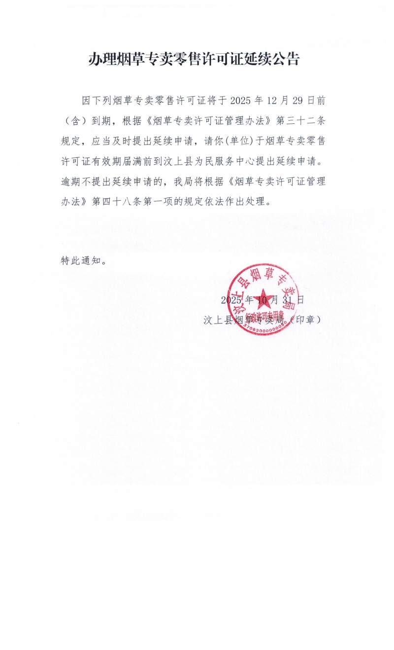 汶上县烟草专卖局办理烟草专卖零售许可证延续通知表.xls