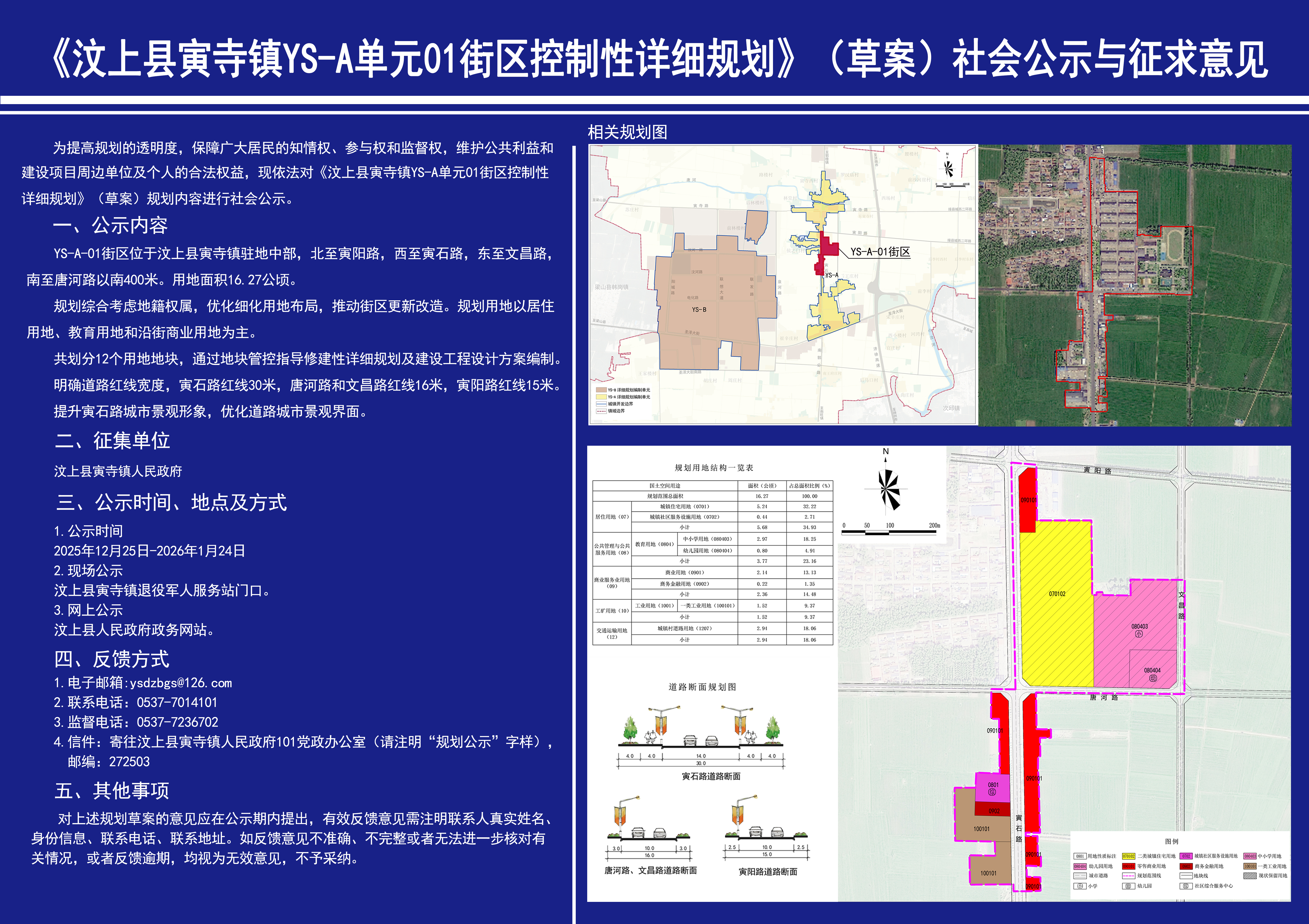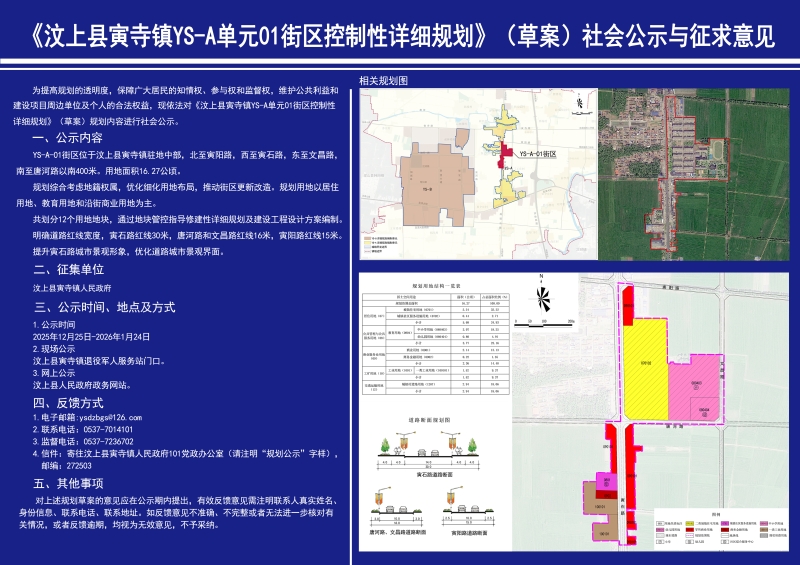 《汶上县寅寺镇YS-A单元01街区控制性详细规划》(草案)社会公示与征求意见