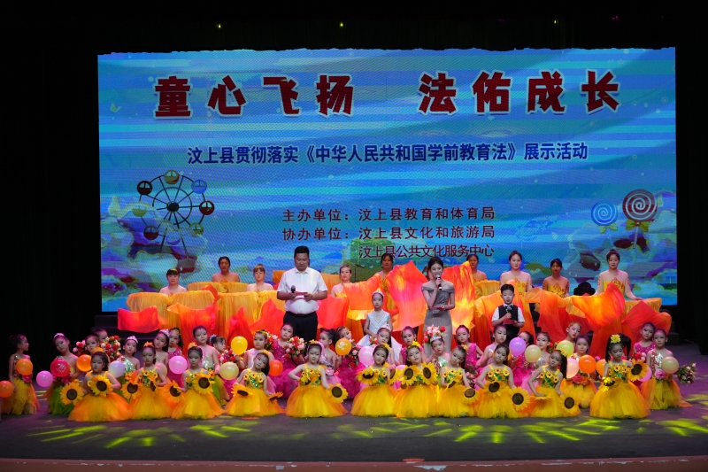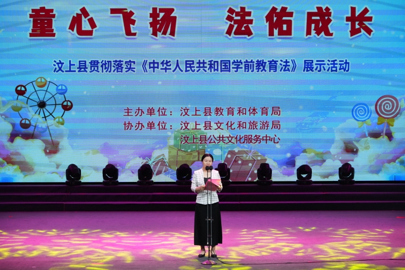 为深入贯彻落实《中华人民共和国学前教育法》,全面展示我县学前教育发展成果,5月29日,县教体局在县文化馆剧场举办了“童心飞扬 法佑成长”汶上县贯彻落实学前教育法展示活动。县人大常委会副主任刘爱华出席活动并讲话。县教体局、县妇联、团县委等相关单位负责同志、各乡镇(街道)政府(办事处)分管教育同志及学生代表参加活动。