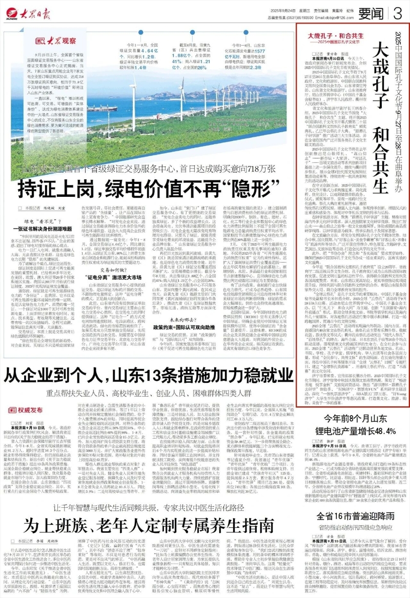 9月24日,大众日报03版刊发《大哉孔子 和合共生》,报道2025中国国际孔子文化节将于9月27日至28日在曲阜举办。本届文化节以“大哉孔子 和合共生”为主题,包含开幕式暨孔子教育奖颁奖、乙巳年公祭孔子大典、“跟着孔子研学游”推广活动三大主体活动,并创新呈现全球“云祭孔”等环节。活动注重守正创新与文旅融合,将结合中秋国庆假期推出一系列惠民文旅举措,致力打造一场庄重简约、富有实效的文化盛典。 原文如下: 9月23日上午,省政府新闻办举行新闻发布会,介绍2025中国国际孔子文化节有关情况。 2025中国国际孔子文化节将于9月27日至28日在曲阜举办,由山东省人民政府、文化和旅游部、中国联合国教科文组织全国委员会主办,山东省委宣传部、山东省文化和旅游厅、山东省教育厅、尼山世界儒学中心(中国孔子基金会秘书处)、济宁市人民政府、衢州市人民政府承办。 省文化和旅游厅副厅长王炳春介绍,2025中国国际孔子文化节围绕“大哉孔子 和合共生”主题,将开展2025中国国际孔子文化节开幕式暨第二十届“联合国教科文组织孔子教育奖”颁奖典礼、乙巳年公祭孔子大典、“跟着孔子研学游”推广活动三大主体活动,并在全省范围内广泛开展各类孔子文化主题文旅活动。 2025中国国际孔子文化节将在去年创新推出尼山敬师礼、“高山仰止”——新杏坛·大家讲、“对话孔子”——百项文旅活动等系列创新项目基础上进一步深化提升,继续与衢州同步祭孔,展示全球Z世代图文短视频征集活动成果等,持续培育一批具有影响力的活动品牌。 在守正创新方面,2025中国国际孔子文化节开幕式力求典雅庄重,简化流程、优化设计,以戏剧情景串联政务、仪式、颁奖等环节,呈现一场跨时空文化盛典。祭孔大典注重礼制传承,遵循传统祭孔仪程仪规,增强人文内涵,体现传承创新,增强仪式的庄重感和感染力,体现对中华礼乐文明的传承与弘扬。 在研学旅游方面,聚焦“跟着孔子研学游”主题,精准对接海内外多元化研学需求,深入挖掘儒家文化研学资源,推出仁智山水——高山仰止之旅等一批文化底蕴深厚、体验感强的高品质研学线路,以研学旅游为载体,传承弘扬孔子及儒家思想。 在文旅融合方面,将充分发挥国际孔子文化节载体优势,结合中秋、国庆假期,与“好客山东·美食争霸赛”和“好客山东·齐鲁1号”旅游列车等结合,广泛开展宣传推介、特色展览、主题研学、文艺演出、文旅体验等活动,打造全民共享的文化节日。 此外,把“节俭办会”理念和“务实高效”要求贯穿始终,确保把2025中国国际孔子文化节办成一场庄重简约、富有实效的文化盛典。 今年是“联合国教科文组织孔子教育奖”设立20周年。省教育厅二级巡视员李文生介绍,孔子教育奖已成为山东推动国际教育发展、促进文明互鉴的标志性平台,获得联合国教科文组织及各国高度赞赏。未来,山东将以更高站位、更实举措推动奖项提质升级,持续巩固与联合国教科文组织的合作,彰显山东服务国家外交大局、助力全球教育发展的担当。 “全球云祭孔”是孔子文化节的重要板块。中国孔子基金会秘书处副秘书长米怀勇介绍,2025全球“云祭孔”活动将于9月28日9点启幕。活动由尼山世界儒学中心、中国孔子基金会主办,以“仁礼天下 和合大同”为主题,创新“主演播室+海内外直播点”形式,联动全球多地文庙、书院等儒学机构以及海内外几十家媒体,对各地祭孔活动进行集中展示和讲解,打造一场跨越国界、贯通古今的文明交响。 2025全球“云祭孔”活动将实现海内外联动。国内方面,将直播国内40余家文庙祭孔典礼,曲阜孔庙主要有乐舞告祭、敬献花篮、恭读祭文等仪式;衢州孔庙祭孔活动突出“现代人祭孔”“百姓祭孔”的特点。海外方面,日本东京孔子庙等20余个站点联动直播,展现儒家文化跨越国界的生命力。在全社会参与方面,2025全球“云祭孔”活动将广泛联动世界各地文庙、孔庙、书院、学校、孔子学堂、儒学机构、华人社团等社会各层面力量,形成“全民参与、共传文脉”的生动局面。在长效化传播方面,将在中国孔子网等媒体开设“全球‘云祭孔’回顾”专题栏目,建立“全球祭孔资源库”,开通线上祭孔平台,打造“不落幕”的文化空间。 济宁市委常委、宣传部部长董冰介绍,2025中国国际孔子文化节期间,济宁借势中秋国庆假期文旅消费热潮,策划了“畅游圣地 悦享金秋”文旅促消费活动,推出“游目骋怀-跟着孔子去研学”体验季、“玩转济宁·景景有FUN”系列研学主题活动,深化“一张机票游济宁”、双5A景区门票互惠、“好Young济宁”大学生半价游济宁等惠民政策,打造集文化、旅游、购物、美食于一体的盛宴。 来源:济宁文旅 |
