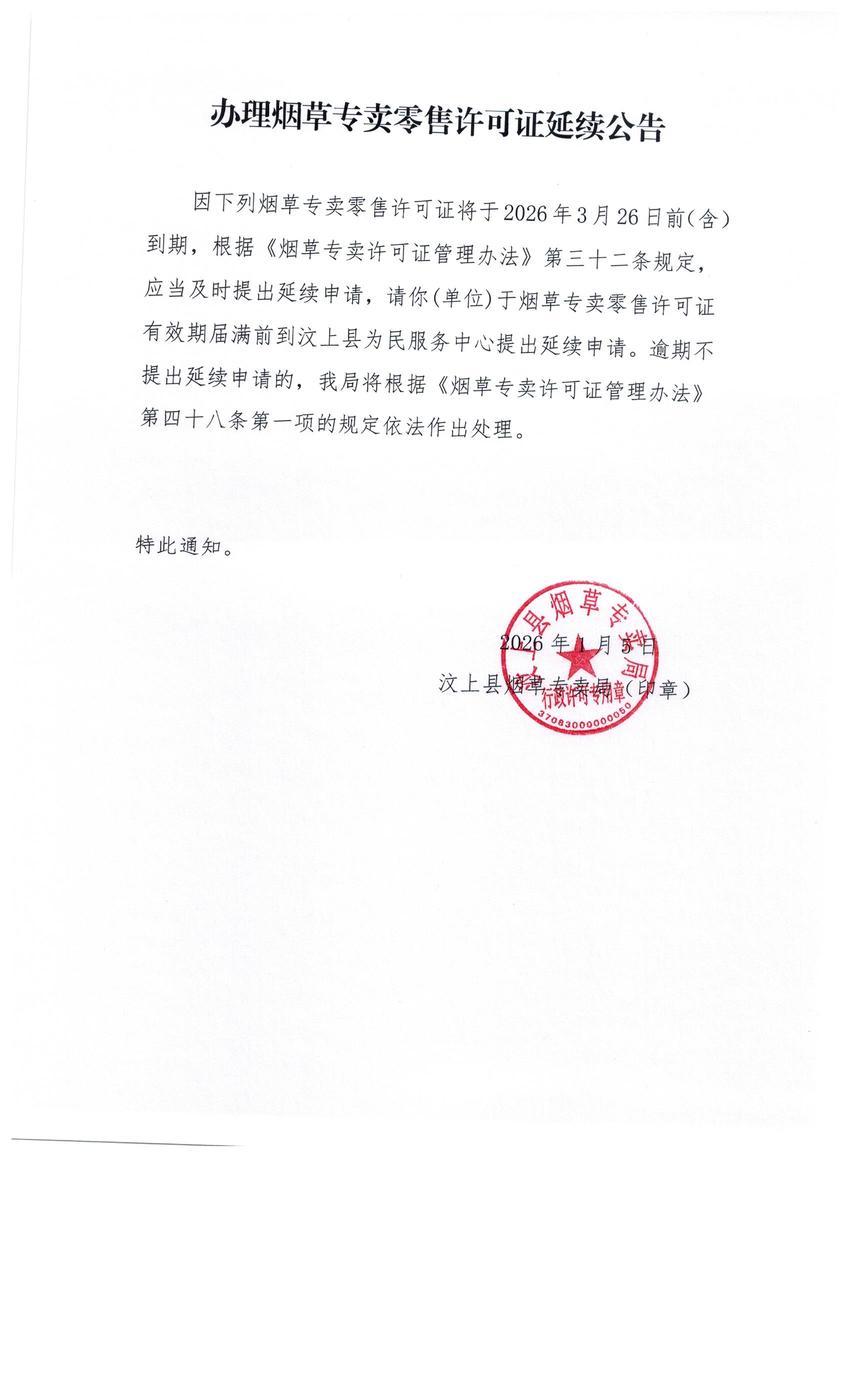 汶上县烟草专卖局办理烟草专卖零售许可证延续通知表.xls