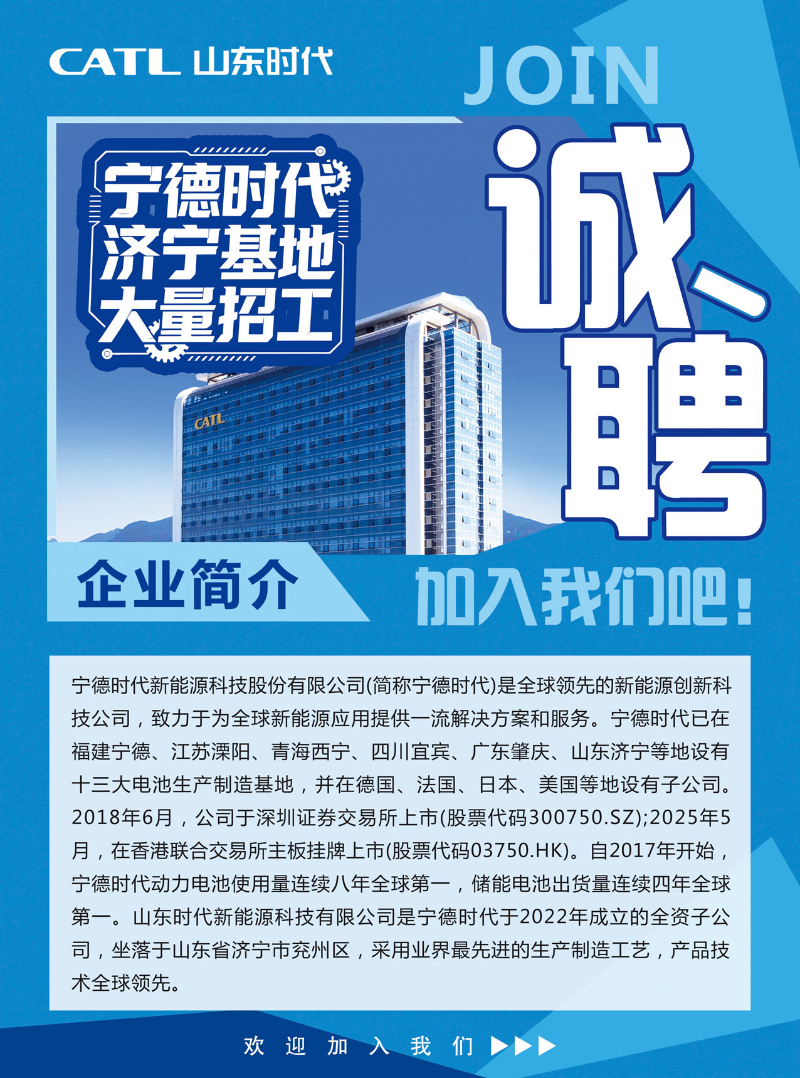 宁德时代济宁基地招聘信息