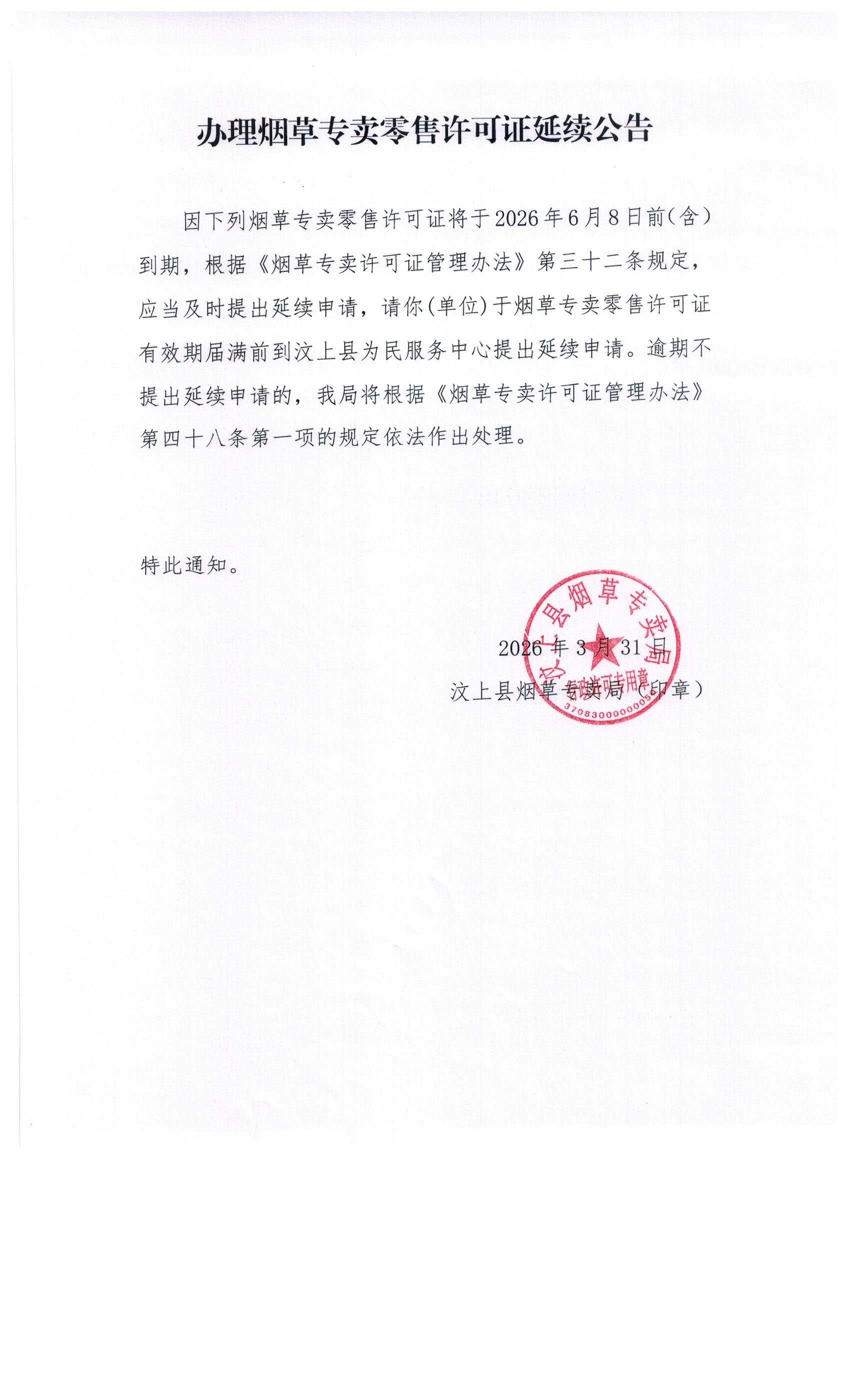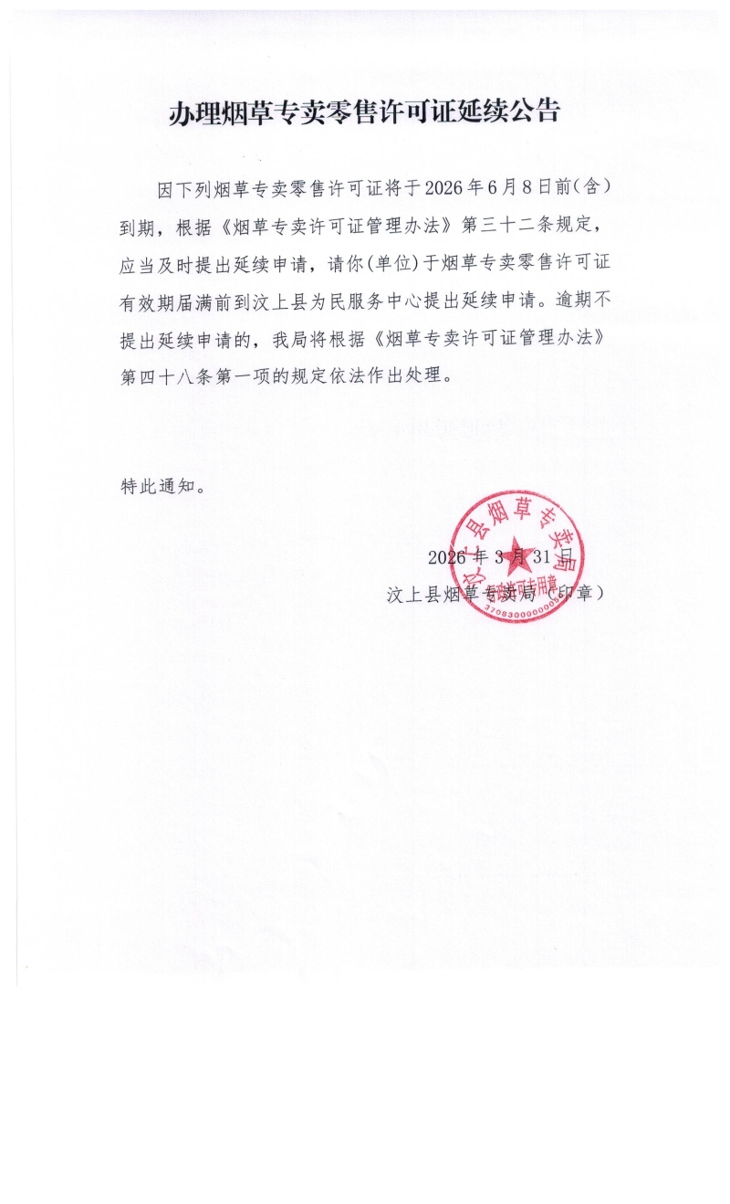 汶上县烟草专卖局办理烟草专卖零售许可证延续通知表 (2).xls