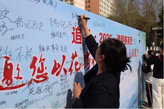 又是一年清明至,缅怀英烈寄哀思。为深切缅怀革命先烈的丰功伟绩,传承弘扬伟大英烈精神,深化全县爱国主义教育,4月3日,汶上县退役军人事务局联合多部门、全县各中小学组织全县相关单位干部职工齐聚汶上县烈士陵园,隆重开展“追寻·2026·清明祭英烈”主题祭扫活动,以庄重肃穆的仪式,祭奠革命先烈、传承红色基因,表达全县干部群众对革命先烈的无限追思与崇高敬意。 松柏苍翠守护英魂,丰碑矗立铭记功勋。活动现场,全体参与人员整齐列队、神情庄重,在肃穆的氛围中,祭扫活动正式拉开帷幕。 鞠躬默哀寄哀思,初心如磐忆忠魂。全体人员面向革命烈士纪念碑,整齐行三鞠躬礼,随后低头静立、默哀一分钟,深切缅怀为民族独立、人民解放、国家富强和人民幸福英勇献身的革命先烈,深情追忆先辈们浴血奋战、无私奉献的英雄壮举,用心感悟革命先辈坚定不移的理想信念与舍生取义的崇高精神。 敬献鲜花敬英烈,瞻仰丰碑传精神。默哀仪式结束后,青少年学生们手持扫帚、抹布,认真清扫烈士陵园内的落叶、杂物,仔细擦拭烈士墓碑、纪念碑基座,不放过每一处角落,用实际行动呵护烈士安息之地。全体干部职工、学生代表依次依次缓步绕行革命烈士纪念碑一周,驻足瞻仰镌刻着英雄事迹的丰碑,满怀崇敬之情将手中鲜花轻轻敬献于碑前。一束束鲜花承载着全县干部群众对英烈的深切缅怀,一声声敬意寄托着对革命精神的永续传承。 铭记誓言担使命,签名践行守初心。祭扫活动尾声,全体人员共同前往主题签名墙,参与“追寻·2026·清明祭英烈”集体签名活动,大家一笔一划郑重写下自己的名字,以笔墨为誓、以行动践初心,许下铭记英烈事迹、传承红色血脉、勇担时代使命、践行责任担当的庄严承诺。 追寻红色足迹,感悟英烈精神。祭扫仪式结束后,全县各单位干部职工、师生代表分批走进烈士纪念馆,开启一场红色精神研学之旅,认真聆听讲解员讲述革命先烈抛头颅、洒热血,为国家独立、民族解放浴血奋战的峥嵘岁月,深入了解汶上本地革命先辈的英勇事迹和奋斗历程。认真聆听、仔细记录,在红色历史中汲取成长力量,厚植家国情怀。 下一步,汶上县将以此次祭扫活动为契机,把对革命先烈的缅怀崇敬之情,转化为推动全县各项事业高质量发展的强大动力。全县各部门、各单位将携手共进,持续传承红色血脉、弘扬英烈精神,立足岗位、履职尽责、实干担当奋力谱写汶上县经济社会高质量发展新篇章,凝聚起建设美好汶上的磅礴力量。 编辑:张明慧 初审:王向红 终审:赵中旺 |