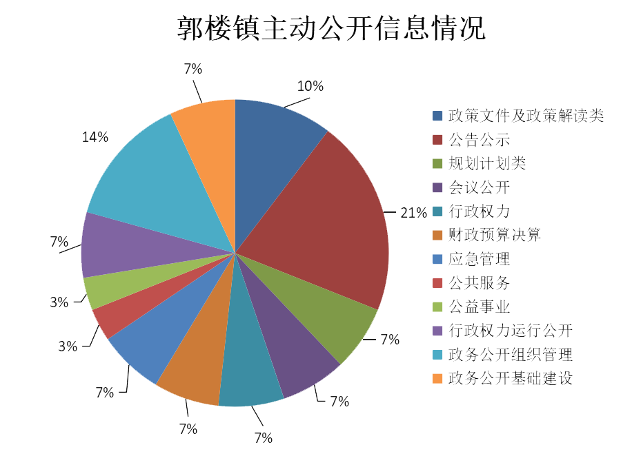 2025年,郭楼镇根据县政府政务公开办的统一安排,按照《中华人民共和国政府信息公开条例》和省、市、县工作要求,按照“以公开为常态、不公开为例外”的原则,加强组织领导,完善制度建设,规范工作程序,创新工作方法,拓宽公开渠道,全面巩固政府信息公开成果,有力地保障了群众的知情权、参与权和监督权,扎实有效推进政府信息公开工作。