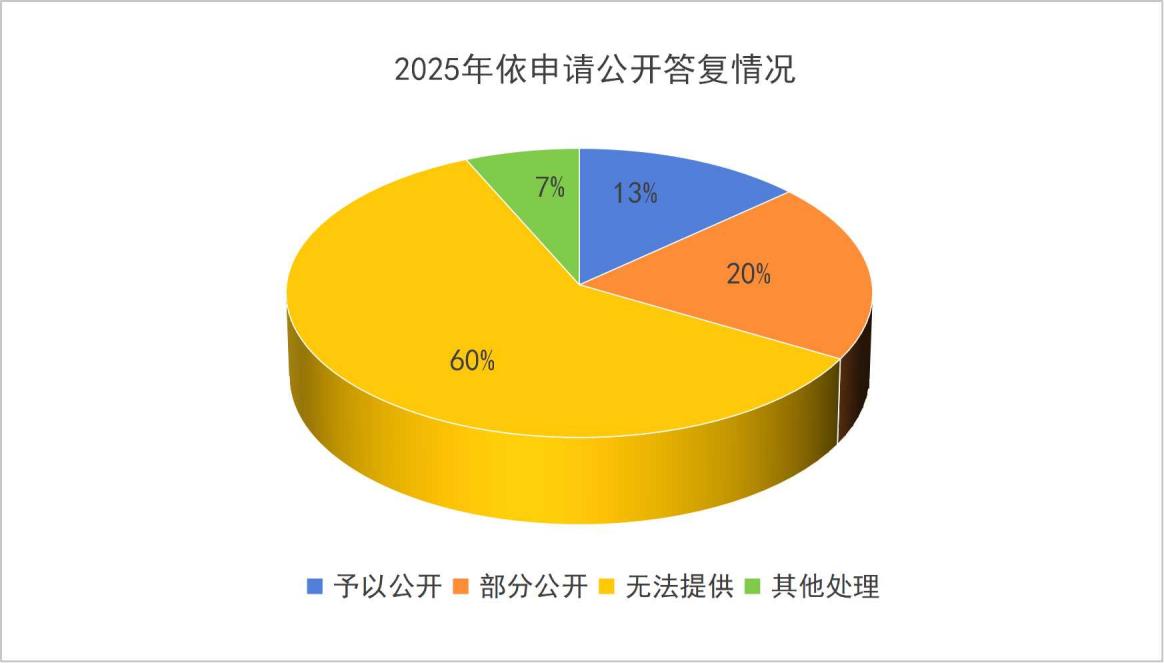 一是严格按照政府信息公开申请流程规范受理答复,确保各环节规范高效。二是建立常态化提醒与督导机制,加强对相关部门依申请公开办理工作的实时提醒与督促指导,确保答复及时准确、规范合法。2025年,共受理向县政府、县政府办公室提出的政府信息公开申请15件,已全部依法依规予以答复,其中,予以公开2件,部分公开3 件,本机关不掌握相关政府信息9件,其他处理1 件。