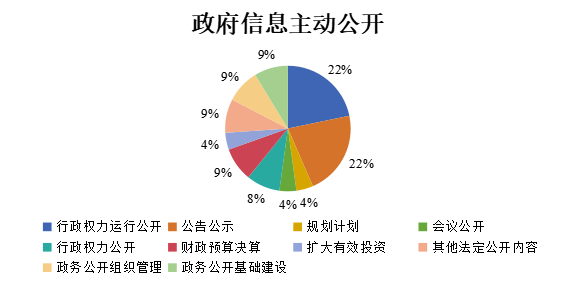 2025年,中都街道政府信息主动公开共23条,其中,行政权力运行公开5条,公告公示5条、规划计划1条、会议公开1条、行政权力公开2条、财政预算决算2条、扩大有效投资1条、其他法定公开内容2条、政务公开组织管理2条、政务公开基础建设2条。